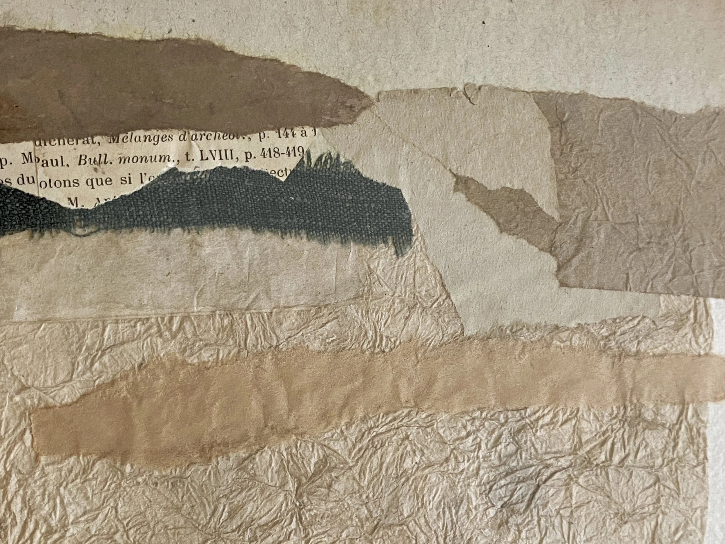 Inspired by simple days relaxing on the gorgeous Mediterranean Sea coast, this collection offers textures ranging from light to heavy and colors from desaturated to slightly more vivid. Antique French book pages, vintage French and Japanese textiles along with painted papers are used to create unique and interesting compositions.